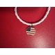USA Flag circle Charm With Leather white bracelet with Lobster Clasp